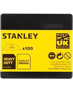 Schachtel mit 100 Stanley Ersatzklingen ohne Löcher, Nummer 1992 (11-921). Diese Ersatzklingen eignen sich für schwere Schnitte wie Teppich und Vinyl und passen auf alle festen und einziehbaren Stanley-Messer: 10-088, 10-099, 10-122, 10-189, 10-199, 10-242, 10-243. 10-299, 10-499, 10-550, 10-705, 10-707, 10-778, 10-780, 10-788, 10-789, 10-810, 10-818, 10-819, 10 - 825, 10-855, FMHT0-10827 und XTHT0-10502. Mehr erfahren - 5 Stanley Ersatzklingen 51923,92 €Inkl. 19% MwSt. , zzgl. VersandLagerbestand: 25