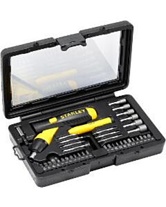 Dieses Stanley FatMax Stiftschlüssel-Satz besteht aus 25 Stiftschlüsseln mit 1/4 Zoll Anschluss (6x Sechskant, 8x PZ, 3x PH, 3x Torx und 5x Schlitz) und einem ergonomischen Griff mit Ratschenfunktion. Es ist in einem handlichen Koffer verpackt. Mehr erfahren - Stanley Ratschen-Bit-Satz mit Pistolengriff 39-tlg29,45 €Inkl. 19% MwSt. , zzgl. VersandLagerbestand: 2